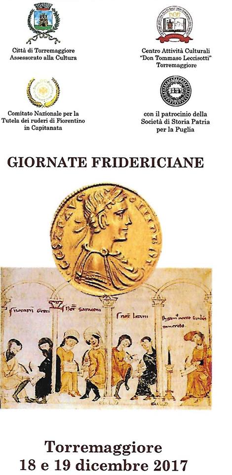 Anche quest’anno hanno riscosso un vivo successo le “Giornate Fridericiane”, tenutesi a Torremaggiore gli scorsi 18 e 19 dicembre. Gli incontri, che hanno avuto come sede la prestigiosa Sala del Trono del Castello Ducale, sono stati organizzati dal Comune di Torremaggiore, dal Centro Attività Culturali “Don Tommaso Leccisotti” e dal Comitato Nazionale per la tutela dei ruderi di Fiorentino in Capitanata, con il patrocinio della Società regionale di Storia Patria per la Puglia.